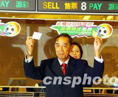 圖為馬會主席夏佳理在投注站購得第一張足球博彩票。