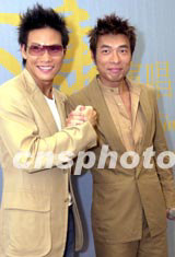 歌星許志安、蘇永康8月4日出席其《香港安康演唱會》記者會,兩人信心十足合力演好《香港安康演唱會》。中新社記者:鄧慶樂