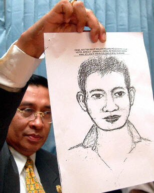 印尼警察總長巴赫蒂亞爾說,警方已經(jīng)勾畫出購買肇事車輛和執(zhí)行爆炸任務(wù)的疑犯的頭像。他透露,兩個(gè)沒有表明身份的人從一名車主那里購買了那輛藍(lán)色吉普車,雖然他們抹去了汽車和發(fā)動機(jī)的號碼,但警方還是查出了車的來源。
