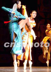 八月初正在北京苦練中央芭蕾舞團(tuán)新版《大紅燈籠高高掛》的女主角朱妍,身著法國服裝設(shè)計大師布倫的新作,在足尖旗袍共舞中展示人體的美妙,充分表現(xiàn)東方悲劇命運(yùn)的感情變化。中新社記者:賈國榮