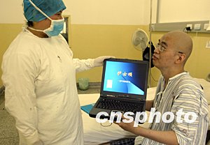 在北京地壇醫(yī)院住院治療的全國(guó)最后一批SARS患者下周即將全部康復(fù)出院。4月7日發(fā)病,17日住院的北京“北方交通大學(xué)”計(jì)算機(jī)專(zhuān)業(yè)19歲學(xué)生孫崢,歷經(jīng)四家醫(yī)院一百多天的搶救治療終于從死亡的邊緣回到了人間。就要離開(kāi)地壇醫(yī)院的孫崢制作了幻燈片“護(hù)士頌”,表達(dá)對(duì)白衣天使的衷心感謝。中新社記者:任晨鳴