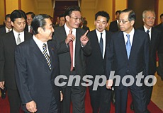 中日友好協(xié)會和中國人民對外友好協(xié)會今晚在人民大會堂三樓大廳舉辦紀念中日和平友好條約締結二十五周年招待會。吳邦國出席招待會,并于招待會前在陜西廳會見了專程來華參加紀念活動的日本前首相橋本龍?zhí)珊痛迳礁皇校约皟乳w官房長官福田康夫和日中友好團體負責人等各界代表。