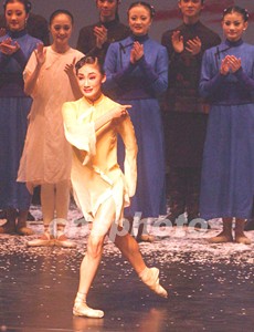 中國(guó)中央芭蕾舞團(tuán)的新版《大紅燈籠高高掛》,八月十日晚在北京成功完成首演,扮演三姨太的芭蕾新秀再三謝幕。中新社記者:賈國(guó)榮