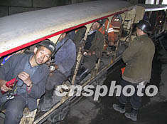 山西大同市杏兒溝煤礦第六批搜救隊(duì)員在瓦斯爆炸現(xiàn)場連續(xù)工作十小時(shí),搶救依然失蹤的5名礦工。圖為搜救隊(duì)員13日疲憊不堪地走出坑口。杏兒溝煤礦“八·一一”瓦斯爆炸已造成三十七人死亡。作者:王煥偉