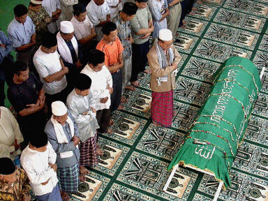 圖:雅加達萬豪酒店爆炸案遇難者舉行葬禮