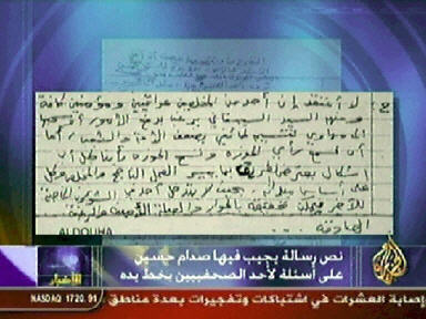 中新網(wǎng)8月14日電 卡塔爾半島電視臺(tái)13日播出了一封據(jù)稱是來自伊拉克前總統(tǒng)薩達(dá)姆的親筆信。薩達(dá)姆在信中號(hào)召伊拉克占大多數(shù)的什葉派穆斯林“討伐異教,發(fā)動(dòng)圣戰(zhàn)”,抵抗入侵者。