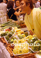 2003香港美食博覽會八月十四日在香港會展中心開幕,圖為展會上農(nóng)產(chǎn)品中的有機(jī)蔬菜。中新社記者:錢興強(qiáng)