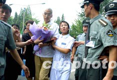 中新網(wǎng)北京8月16日電(記者吳慶才)今天,十九歲的北方交大學生孫崢緊緊地擁抱著精心呵護他的“干媽”——地壇醫(yī)院護士長劉曉冬。孫崢和另一名SARS患者盧志艷今天成了中國最后兩名走出病房的SARS康復者。至此,中國抗擊SARS的斗爭取得了全面的勝利。