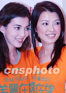 香港無線電視藝員前港姐林敏俐【右】、左慧琪,8月18日在《美麗在望》電視劇宣傳活動時惺惺相惜。