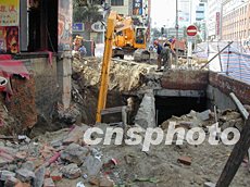 八月十六日晚十九時(shí)許,正在施工的哈爾濱“人和世紀(jì)廣場(chǎng)”地下工程發(fā)生塌方,至多人傷亡。搶救人員從十八日起開(kāi)始從塌方處挖掘殘土,繼續(xù)尋找失蹤者。作者:寧秀英