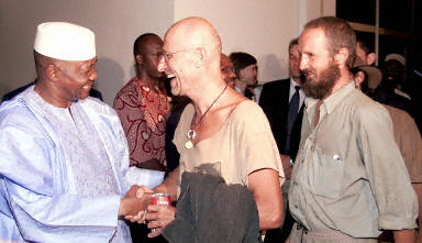 8月19日,馬里總統(tǒng)杜爾(左一)在巴馬科接見(jiàn)獲釋的歐洲人質(zhì)。