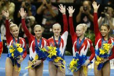 中國隊最后一項是相對較弱的項目自由操。首先出場的美國隊表現(xiàn)出色,三名出場的選手發(fā)揮越來越好,總分達到112.573分,實際上已經(jīng)提前把冠軍攬入囊中。中國隊選手接連出現(xiàn)了一些失誤,前兩名選手都沒有得到9分以上,最終只能以110.259分的總成績名列第四。羅馬尼亞隊獲得第二。澳大利亞在最后一個項目中發(fā)揮出色,奪取第三名。