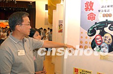 曾蔭培參觀“正確使用999緊急電話”海報設(shè)計獲獎作品。中新社記者:錢興強(qiáng)