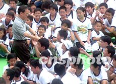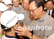 曾蔭權(quán)出席香港少年警訊滅罪夏令營活動,受到少年們的熱烈歡迎。中新社記者:錢興強(qiáng)
