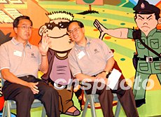 香港政務(wù)司司長曾蔭權(quán)、警務(wù)處長曾蔭培出席香港少年警訊滅罪夏令營活動。中新社記者:錢興強(qiáng)