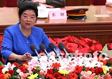 中共中央政治局常委李長春代表中共中央向大會(huì)致辭,他表示要進(jìn)一步緊密團(tuán)結(jié)港澳臺(tái)婦女同胞。中新社記者:廖文靜