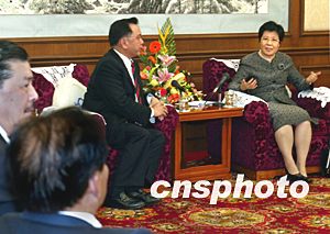 國務(wù)院僑辦主任陳玉杰二十二日在北京釣魚臺會見以余國春(左二)為團(tuán)長的香港廣東社團(tuán)總會訪京團(tuán)一行,雙方就居民個人可申請辦理赴港游等問題交換意見。中新社記者:鄭萍萍