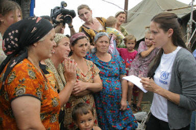 作為聯(lián)合國(guó)難民事務(wù)高級(jí)專(zhuān)員公署的“親善大使”,好萊塢影星安吉莉娜·朱莉22日探訪了俄羅斯北高加索地區(qū)靠近車(chē)臣邊境的貝拉難民營(yíng),受到車(chē)臣難民的熱情歡迎。朱莉自從2001年被聯(lián)合國(guó)難民署任命為“親善大使”以來(lái),已經(jīng)實(shí)地訪問(wèn)了世界多個(gè)國(guó)家的難民營(yíng)。