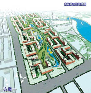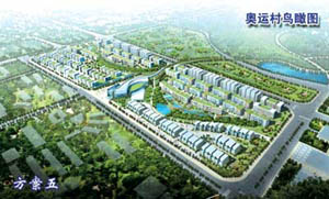 在這個(gè)方案中,奧運(yùn)村布局按雙“喜”字分為四個(gè)組團(tuán),還設(shè)計(jì)了聯(lián)系奧運(yùn)村中心區(qū)與北部森林公園之間的“景觀通廊”。