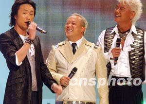 在二十三日晚紅(石+勘)香港體育館舉行的2003年度香港小姐競(jìng)選決賽上,香港明星曾志偉、陳百祥、鄭中基擔(dān)任港姐競(jìng)選大會(huì)司儀。中新社傳真 錢興強(qiáng) 攝