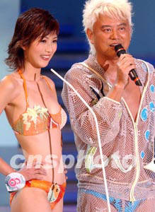 香港明星陳百祥 ,在二十三日晚紅(石+勘)香港體育館舉行的2003年度香港小姐競(jìng)選決賽上擔(dān)任司儀 。中新社傳真 錢興強(qiáng) 攝