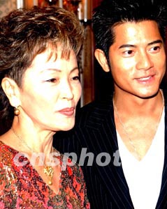 香港明星郭富城和日本世界著名小提琴家西崎崇子,在二十三日晚紅(石+勘)香港體育館舉行的2003年度香港小姐競(jìng)選決賽上擔(dān)任評(píng)判。 中新社傳真 錢興強(qiáng) 攝