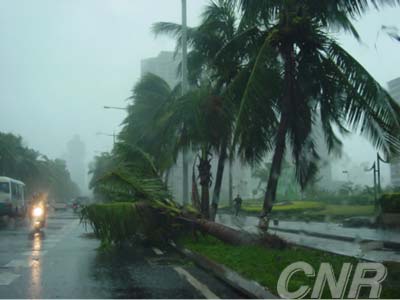 由于受到大范圍停電的影響,記者到八時(shí)三十分才能打開(kāi)電腦寫(xiě)稿,但是短短一篇稿件的撰寫(xiě)中,卻經(jīng)歷了四次停電。記者一大早在中新社海南分社附近地區(qū)看到,今晨橫掃?诘摹翱屏_旺”在城市的樓宇中穿行,強(qiáng)大的氣流形成了類(lèi)似乎警笛一樣的怪叫聲,整個(gè)城市處于一種莫名的氣氛中。