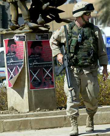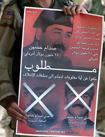 美軍士兵和伊拉克警察到處張貼懸賞捉拿薩達姆的海報時引來了眾多巴格達市民的圍觀。圍觀的人群當中對捉拿薩達姆一事各有各的看法,一名現(xiàn)年23歲的伊拉克牙科醫(yī)生海德爾·阿里表示:“我認為他們遲早會捉到薩達姆的,但有一些人似乎不知道任何有關這巨額獎賞的事!