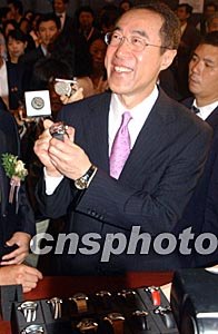 亞洲最大型的鐘表展“香港鐘表展2003”,九月三日在香港會展中心揭幕,香港財政司司長唐英年在展會上參觀。中新社記者:錢興強(qiáng)