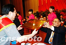“第三次全國(guó)自強(qiáng)與助殘模范表彰大會(huì)”七日在北京隆重召開,殘聯(lián)主席鄧樸方高興地為扶殘助殘先進(jìn)人物頒發(fā)證書獎(jiǎng)牌。激勵(lì)殘疾人自強(qiáng)不息、鼓舞社會(huì)各界奉獻(xiàn)愛心已成為殘聯(lián)的一項(xiàng)重要工作。中新社記者:王麗南