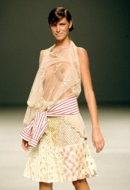 9月10日,在西班牙巴塞羅納舉行了2004時(shí)尚春夏裝展示,模特現(xiàn)場(chǎng)展示了西班牙設(shè)計(jì)師設(shè)計(jì)的最新流行服飾。