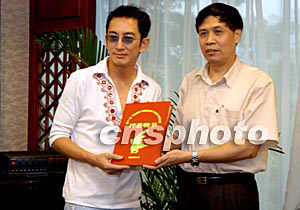 九月十三日,香港演藝界影視紅星吳啟華先生接受由廣州電視臺(tái)副臺(tái)長頒發(fā)的第十一屆“美在花城”準(zhǔn)決賽評(píng)委聘書。作者:劉衛(wèi)勇