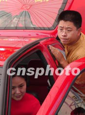 九月中旬,在北京軍事博物館舉行的汽車展銷會上,兩名參觀者神情專注地仔細打量一款價格適中的家庭轎車。據(jù)統(tǒng)計,中檔價位的家庭轎車成為本次車展的消費熱點。中新社記者:張煒