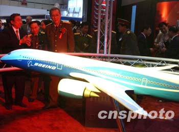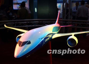 波音租用了若大的展位,重點展示了載客二百至二百五十人的新型波音7E7夢想飛機的模型,該機以安靜的發(fā)動機、可再循環(huán)使用的材料成為波音的“環(huán)保先鋒”。此外,該飛機具有比亞音速飛機更快的速度,體現(xiàn)了波音點到點的直飛理念。他們還放言,此飛機具有空客A380不可比擬的駕駛艙新技術(shù)。