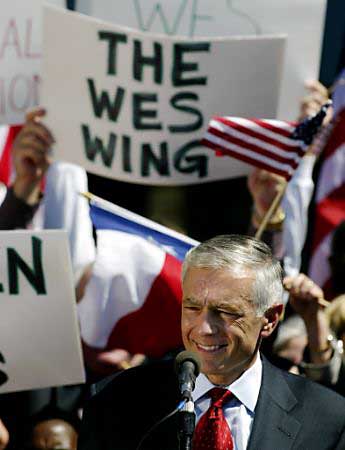 中新網(wǎng)9月19日電 繼宣布與另外九名民主黨議員一起參加明年美國(guó)總統(tǒng)大選之后,克拉克(GEN WESLEY CLARK)昨日在弗羅里達(dá)州對(duì)數(shù)百名支持者發(fā)表首次競(jìng)選演說。