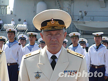 9月20日,俄羅斯海軍“潘捷列耶夫海軍上將”號大型反潛艦,在太平洋艦隊副司令科涅夫·亞歷山大·瓦西里耶維奇中將率領(lǐng)下,抵達(dá)青島港,開始對青島進(jìn)行友好訪問。圖為俄海軍太平洋艦隊副司令瓦西里耶維奇中將在歡迎儀式上。鄒山 攝