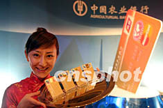 九月二十二日,中國農業(yè)銀行在北京舉行發(fā)卡儀式,推出其信用卡產品——中國農業(yè)銀行金穗卡(貸記卡),持卡人最高可獲得五萬元人民幣的授信額度,無須預先存款即可在規(guī)定額度內消費、取現。中新社記者:盛佳鵬