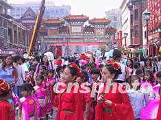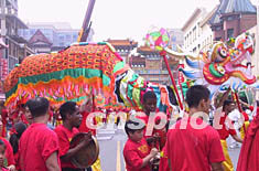 此次由大華盛頓地區(qū)一百多個華人社團(tuán)聯(lián)合舉辦的中國文化節(jié),除了有中國文化工藝展覽和中華美食節(jié)外,最引人注目的是周日下午在唐人街舉行的盛大游行。醒獅起舞、大型花車、武術(shù)功夫、魔術(shù)雜技、民族盛裝、歌舞表演,吸引了數(shù)千華人、當(dāng)?shù)厥忻窦坝慰。特別是廣東省僑辦贈送的一條長達(dá)七十米、需要三十四人共同舞動的巨龍,在唐人街上翻騰跳躍,把節(jié)日氣氛帶向高潮。