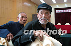 九月二十五日,河南鄭州,兩名花岡事件的河南籍受難者在等待花岡和平友好基金會(huì)發(fā)賠償金。從一九四四年起,共九百八十六名中國人被強(qiáng)擄到日本秋田縣花岡町做苦力,其中四百八十一名勞工命喪日本。自一九八九年起,經(jīng)過幸存者十余年的艱苦斗爭(zhēng),日方同意一次性賠償五億日元。目前找到四百六十四名花岡受難者中,河南籍30人。全部賠償工作將于今年十二月三十一日終止。作者:慎重