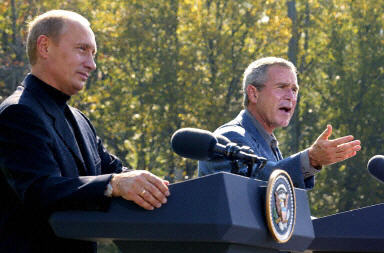 普京和布什兩人在華盛頓附近的戴維營舉行了一次兩天的會談。他們也談到了有關(guān)車臣地區(qū)的持續(xù)不斷的沖突。兩人形容自己為“對抗恐怖活動戰(zhàn)爭中的盟友”。