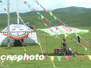 四川省旅游名勝地九寨溝周圍的公路邊,牧民家庭利用今秋旅游黃金季節(jié)開辦休閑草原牧場,青山綠地中的帳篷對自駕車一族堪稱勝地。作者:賈國榮