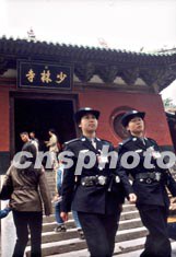 十月八日,兩名女警在河南登封少林寺景區(qū)巡邏。登封市公安局特意在國慶黃金周前成立少林女子派出所,以使景區(qū)更具親和力。這個(gè)派出所由二十二名女警官組成,每人都接受了擒拿格斗、交通指揮、專業(yè)英語和導(dǎo)游知識(shí)等訓(xùn)練。不僅能辦理案件、懂人文地理,還能用外語導(dǎo)游。作者:慎重