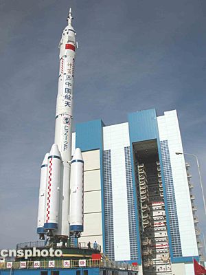 “神舟”五號(hào)載人飛船船箭塔組合體轉(zhuǎn)運(yùn)途中
