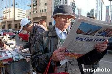 組圖:北京市民關注“神舟”五號成功發(fā)射