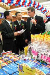 昆明市有關(guān)方面負責人、美國駐上海總領(lǐng)事館農(nóng)業(yè)領(lǐng)事孔銳石,以及美國肉類出口協(xié)會、美國馬鈴薯協(xié)會、加州杏仁商會、阿拉斯加海產(chǎn)市場協(xié)會等六家專業(yè)協(xié)會的代表和二百多位市民出席了今天的開幕式。