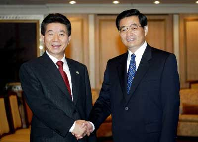 中新網(wǎng)10月20日電 新華網(wǎng)報(bào)道說,中國國家主席胡錦濤19日在曼谷會(huì)見了韓國總統(tǒng)盧武鉉。