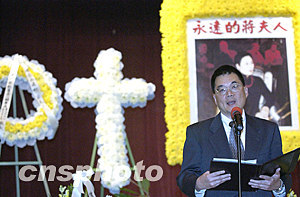 美西時(shí)間十月二十六日晚,美國加州圣尼維爾市僑界舉辦追悼會(huì),悼念二十三日晚在紐約去世的蔣介石遺孀宋美齡。圖為宋美齡弟弟宋子安的二兒子宋仲虎在追悼會(huì)上發(fā)言,悼念姑媽。作者:陳鋼