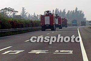 記者今天與海南省公安消防總隊進口的多功能消防車隊四度“遭遇”:一清早這個靜候在海口市龍昆南路旁的火紅車隊吸引了路人的視線;大約九點半,在高速公路上,它們從記者車旁呼嘯而過;當記者抵達博鰲亞洲論壇國際會議中心時,只見這個消防隊伍已演練完畢撤離現(xiàn)場;而下午四時,在?谑械慕诸^,記者又一次與它們相遇。