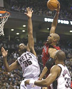 上半時開始后不久網(wǎng)隊就在基德的帶領(lǐng)下向猛龍隊發(fā)難,領(lǐng)先分數(shù)一度達到10分。第一節(jié),新澤西21-17領(lǐng)先四分。第二節(jié),網(wǎng)隊26-21繼續(xù)領(lǐng)先。