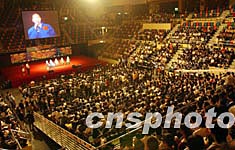 中國首次載人航天飛行代表團(tuán)11月3日在香港伊利莎白體育館與2500多名香港中、小學(xué)生舉行見面會(huì)。中新社記者:錢興強(qiáng)
